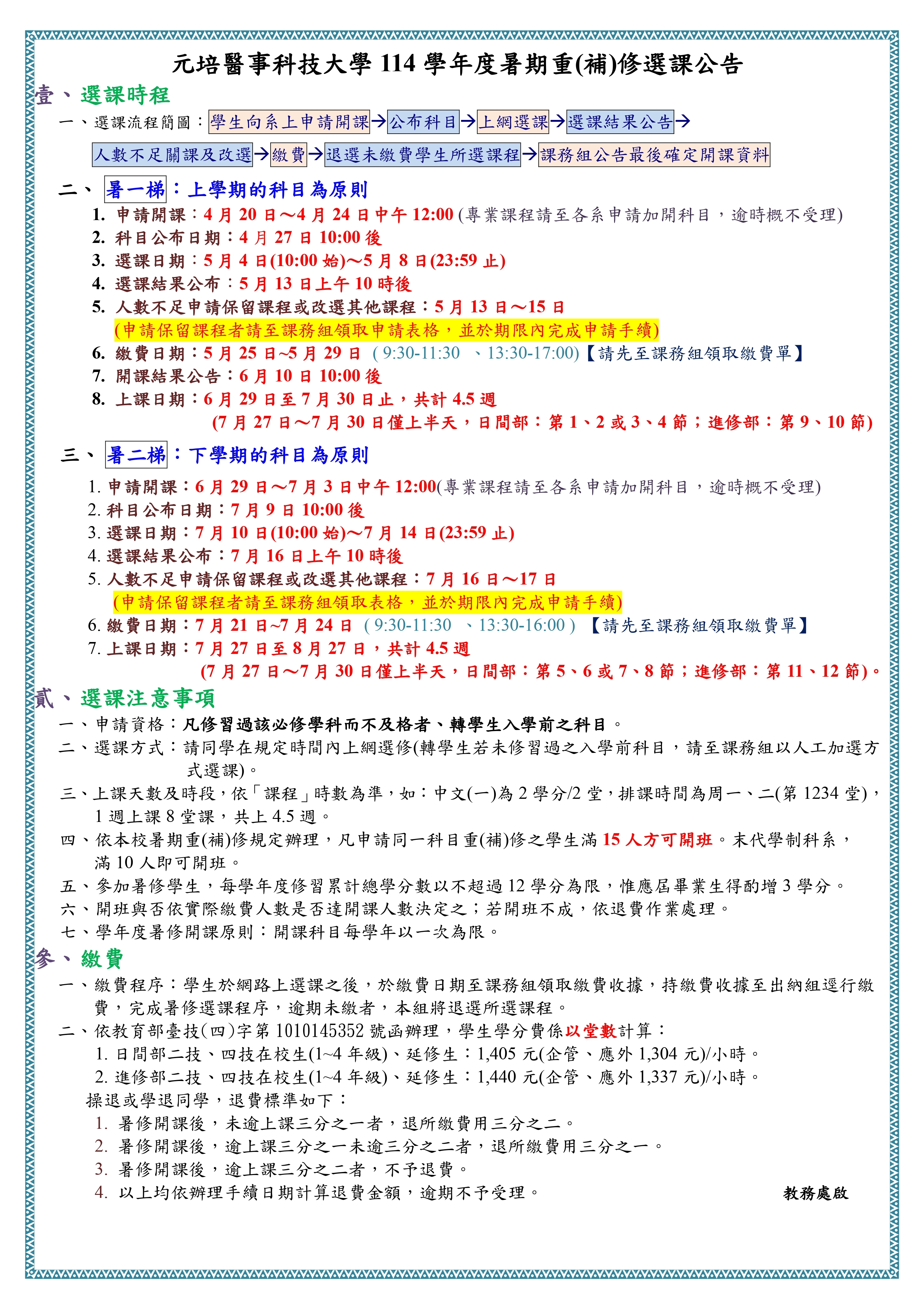暑期重補修注意事項